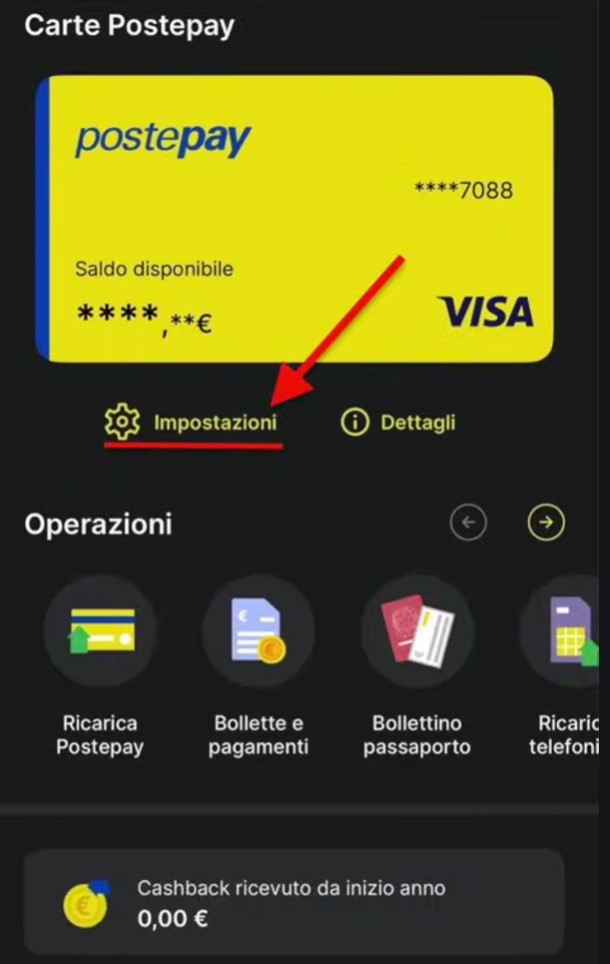 Pour débloquer la situation, vous devez vérifier 3 paramètres de votre carte Postepay en vous rendant dans votre application Poste Italiane :